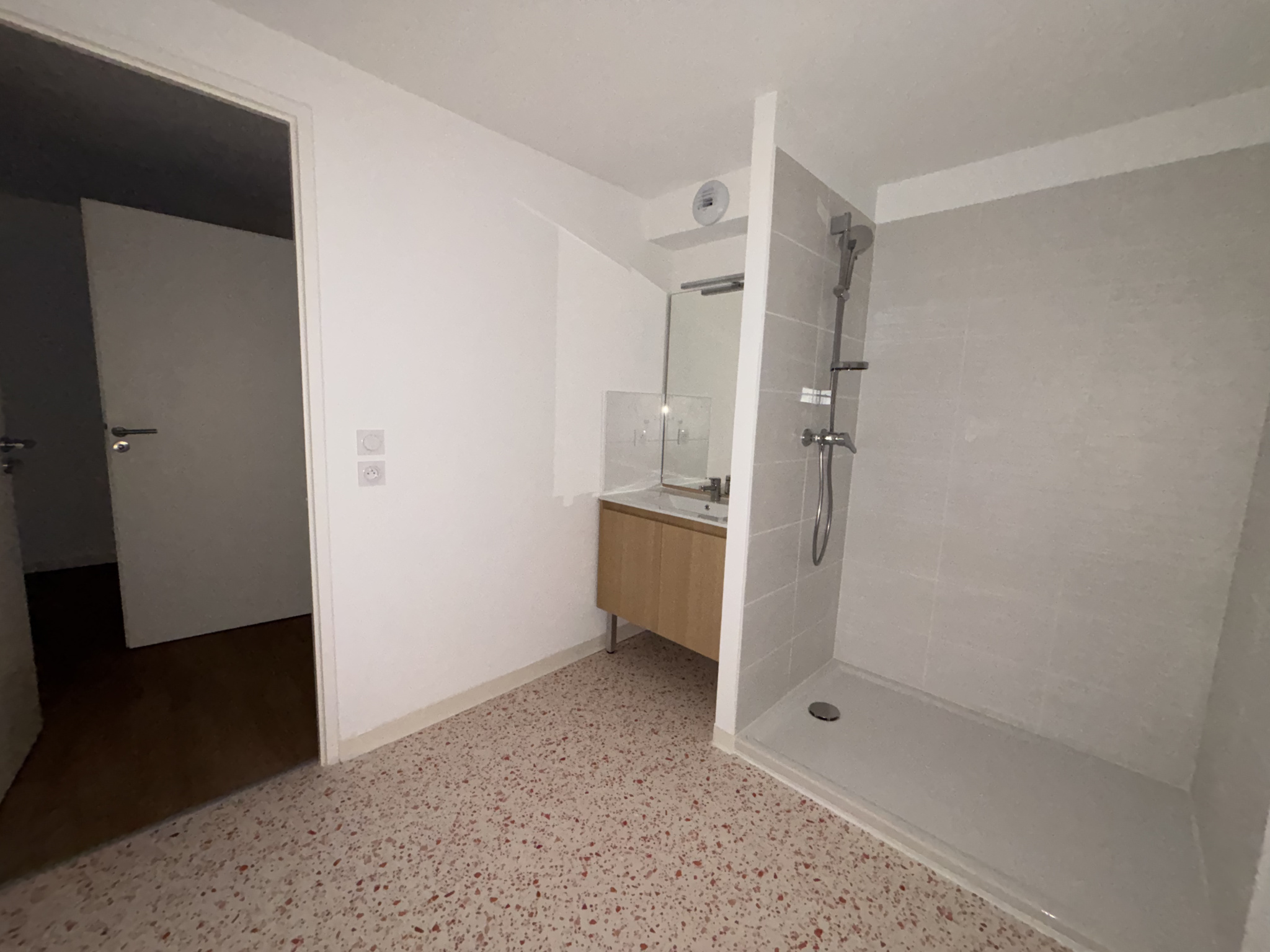 L’appartement se compose d’une entrée desservant une pièce de vie lumineuse avec cuisine aménagée et semi-équipée, d’une chambre confortable, d’une salle d’eau adaptée, et de WC séparés. Accès PMR complet. Vous profitez également d’une place de parking extérieure privative.